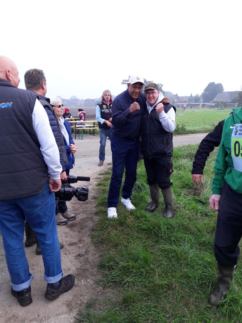 Unser Vereinsvorsitzender Thomas Boxhammer hat auf der BSP 2017 das Fährtenteam als Fährtenleger unterstützt. Im Fährtengelände traf er den ehemaligen US-Profi-Boxer George Foreman, der ein auch ein großer Schäferhundfreund ist.